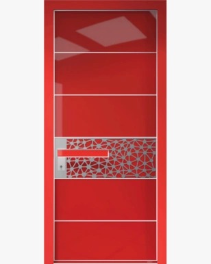 דלתות יהלום בחיפוי זכוכית בשל גווני RAL בשילוב פסי הפרדה ופרופיל הקפי אלומיניום.