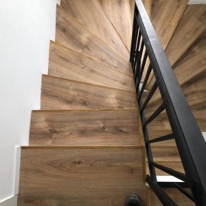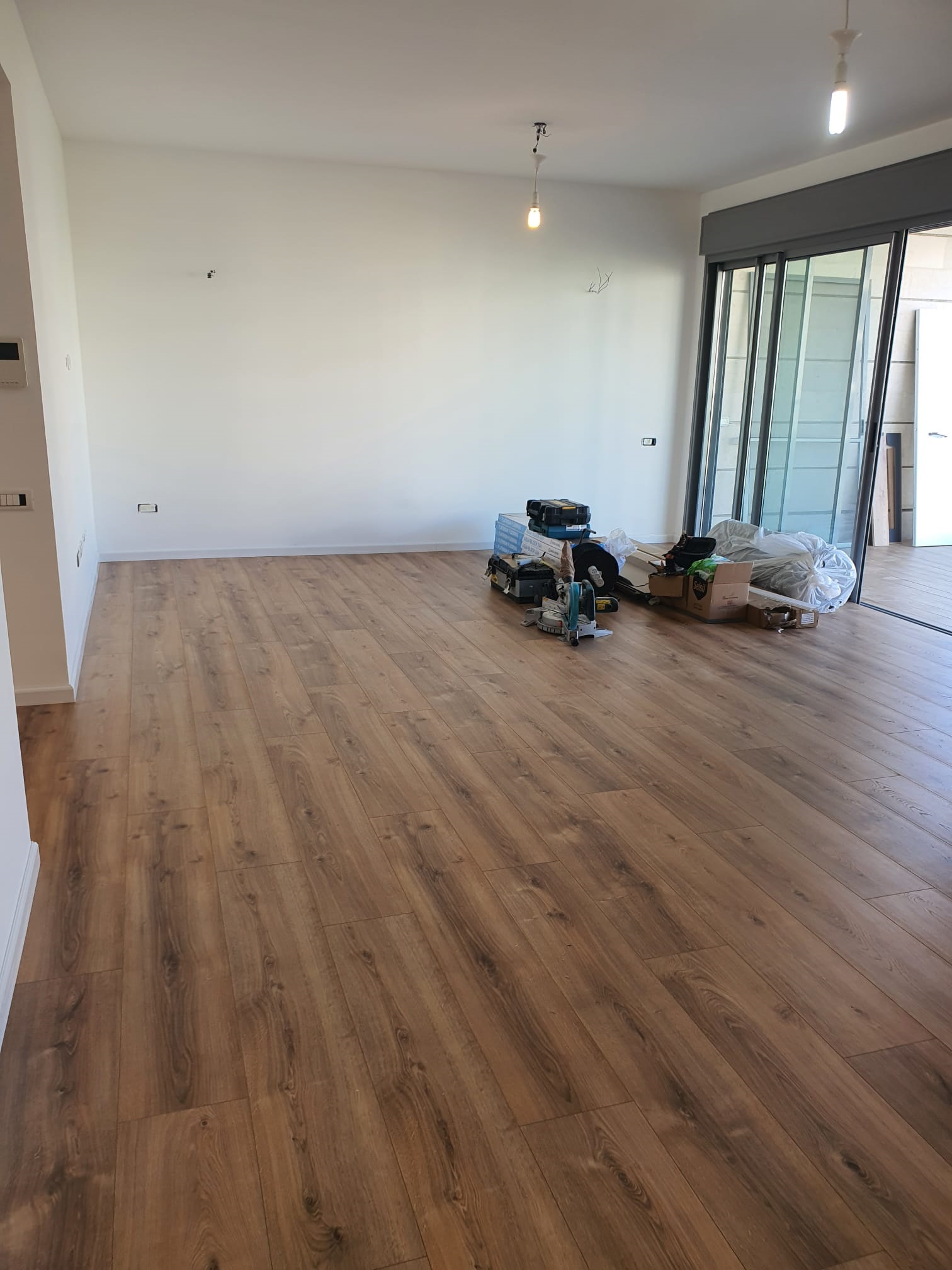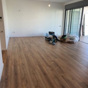 פרקט בדגמי עץ אלון טבעי עם טקסטורה, עמידה למים עם לוחות ברוחב 24 ס"מ ורמת שחיקה גבוהה. מתאים להתקנה במטבחים ושטחים רחבים עם חשש לשפיכת מים.